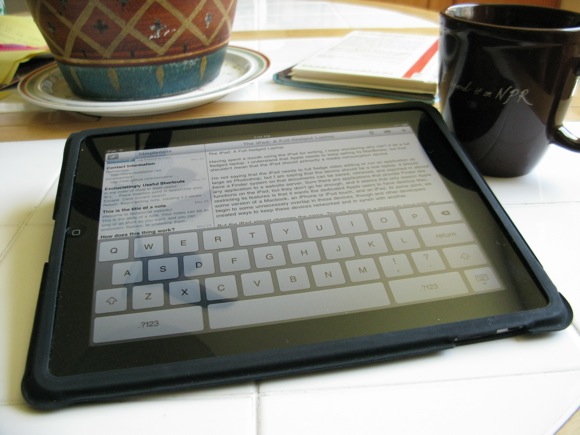 If novel writing were what you wanted to do on the iPad, then you probably could get by just fine. But if the writing you do requires researching, quoting text, embedding URLs, adding images blog posts, and multitasking between apps—all of which is what bloggers do—then the iPad is going to push you back to your Mac desktop or laptop.