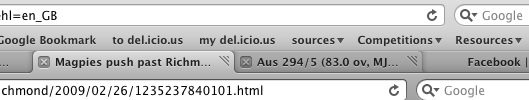 Both apps are functionally wrong, though. In Safari 3, Firefox 3 et al, the tabs are directly connected to the page - like tabs on physical pages. So the metaphor is consistent. It also makes changing pages very quick, as you only have to go to the top of the page to change the page. Very efficient and logical.
