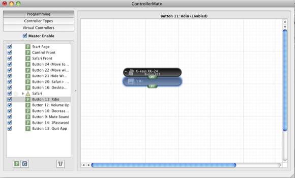 You have less buttons with the Pedal, but notice that in ControllerMate you can assign macros to a group so those macros can only be activated when a specified application is active and in use. For example, you might assign the right foot pedal for opening the homepage of your favorite web browser, and the left pedal assigned to close open tabs in the browser. But when you switch your Finder, the left, right, and center pedals can be used for other actions grouped to the Finder. So to get the most out of the Foot Pedal or X-Keys Keypad, you may not want to create too many universal macros. An exception to this is that you might create a macro that will bring up the Application Switcher on your desktop from within any which application you’re working. Imagine launching this switcher with your foot instead of having to stop and launch it with the keyboard shortcut.