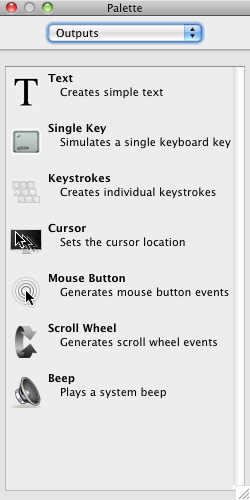 It basically consists of putting together sets of actions to assign to a designated key. For example, you might have one key for quitting an application, another key for increasing the font size of a current web page. You can also create macros for executing AppleScripts, math calculations, and time sequences. More complex macros can be created using the boolean logic actions, modifier building blocks, and other controllers.